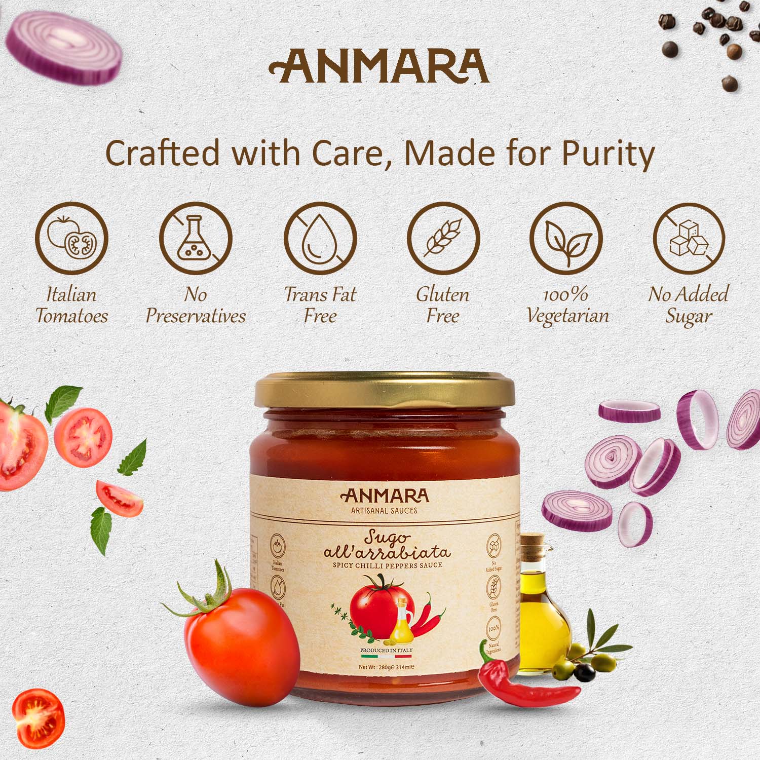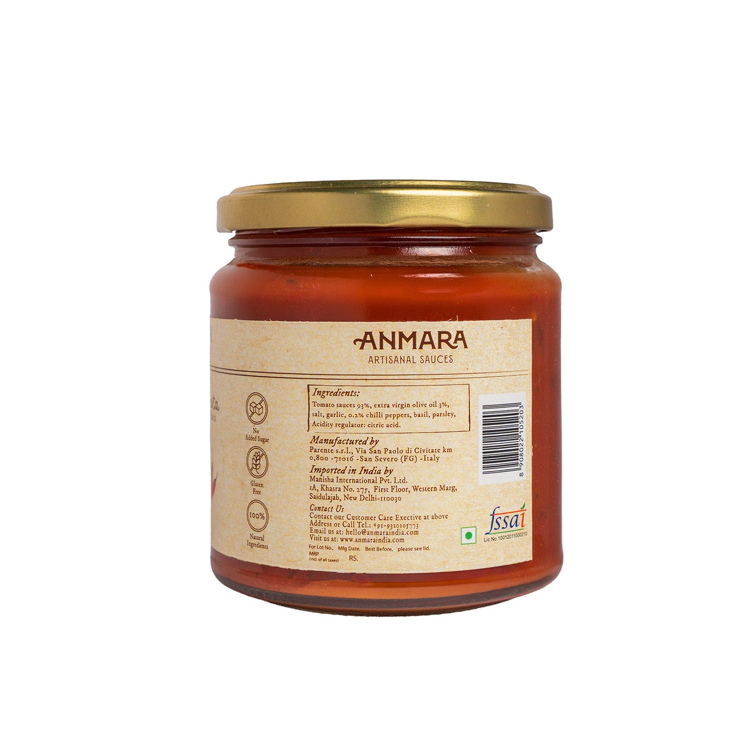 Anmara Artisanal Arrabiata Sauce | Spicy Chilli, Gluten-Free, 100% Natural, Made with Extra Virgin Olive Oil (314 ML)