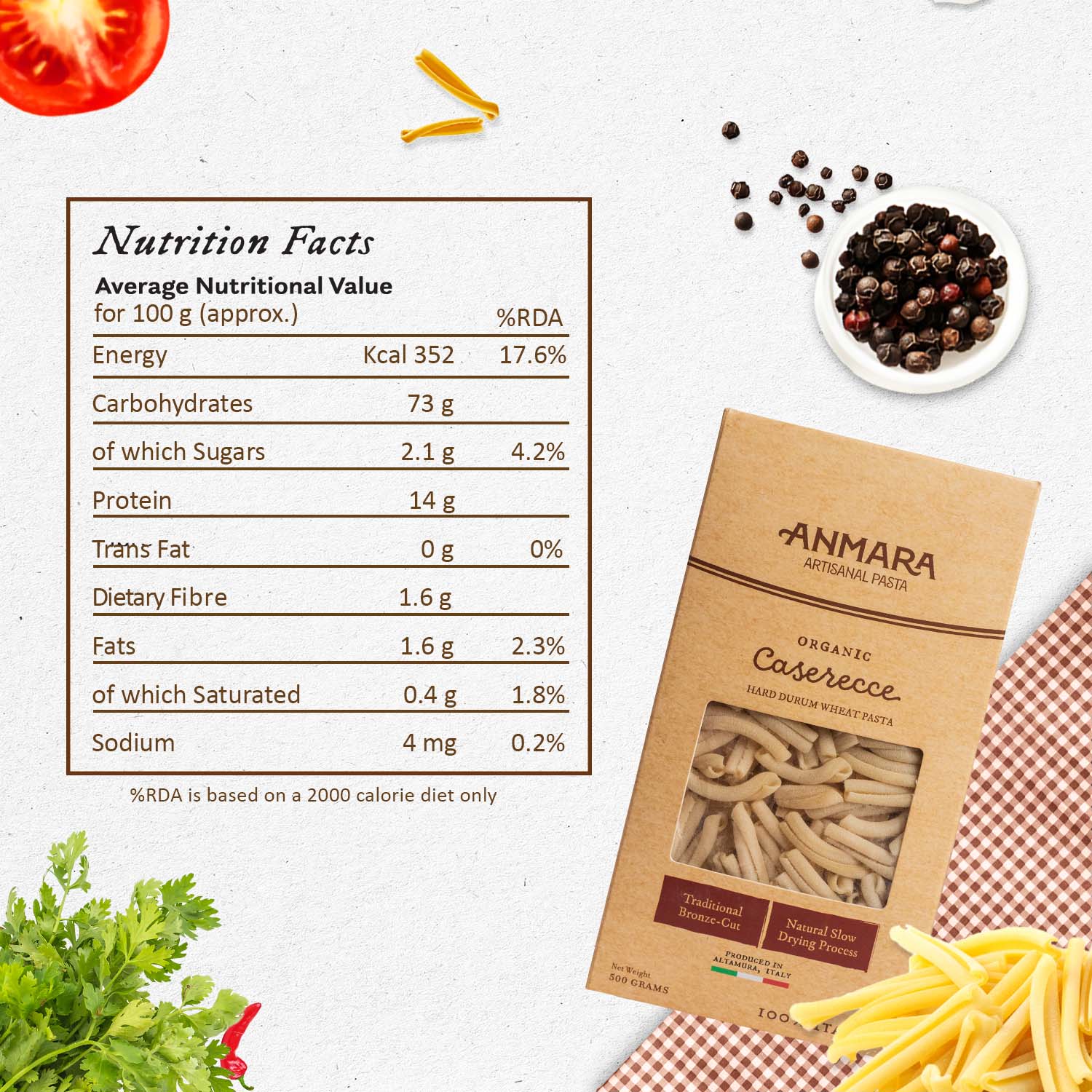 Anmara Artisanal Caserecce Organic Pasta – Hard Durum Wheat Pasta for Authentic Italian Flavors (500g)