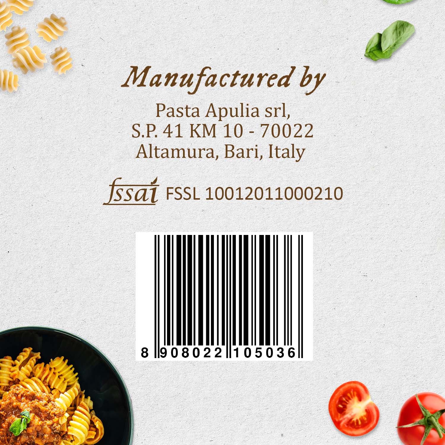 Manufacturer Details: Pasta Aqulia Srl ,S.P,41KM 10-70022,Altamura,Bari Italy