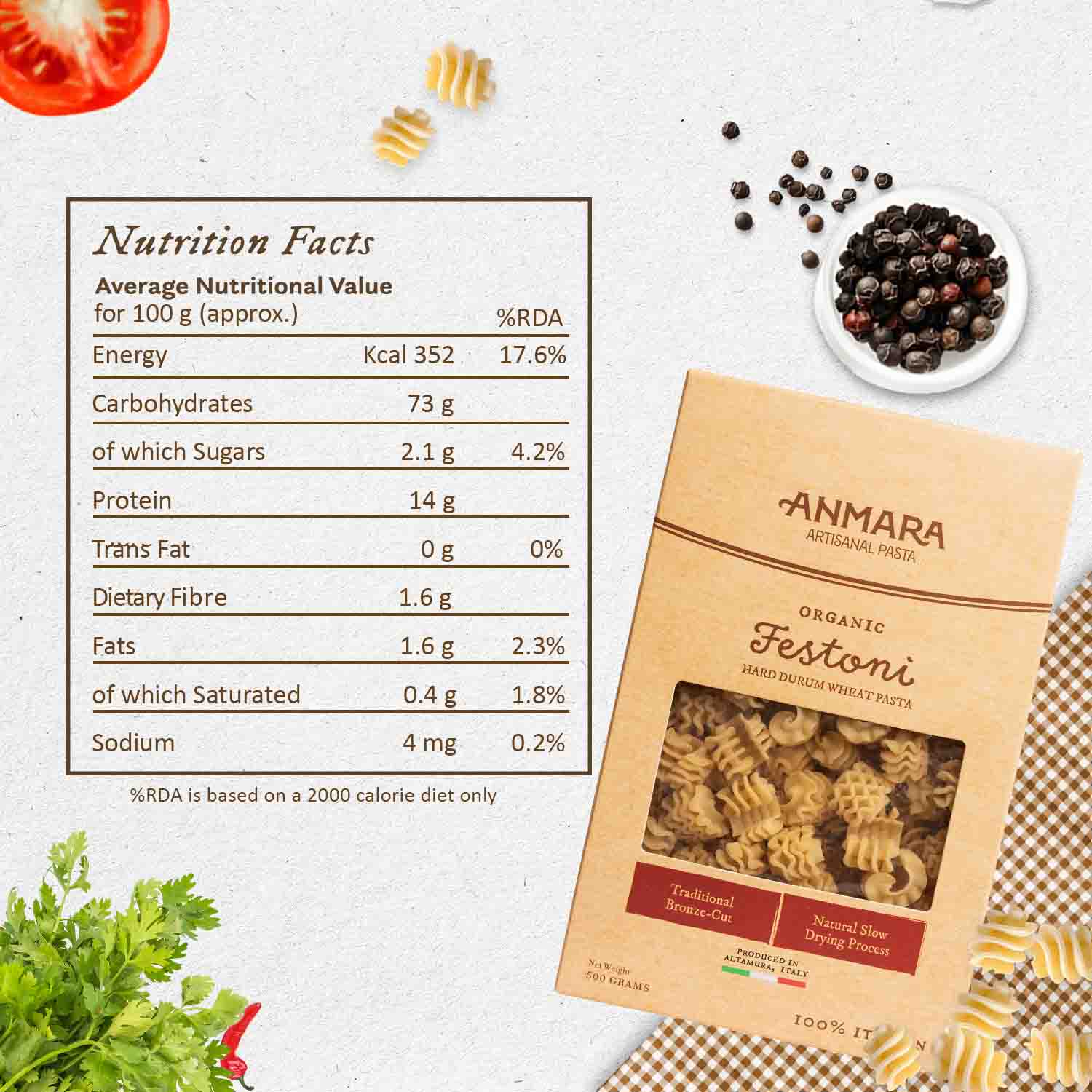 This was my first time trying Anmara’s Festoni pasta, and I absolutely loved it! The wide, rippled shape is so different – it looks fancy and holds sauces beautifully. I made a cheesy tomato bake with it, and the pasta stayed firm and flavorful. It feels like proper Italian quality – rich, hearty, and satisfying. I’ll surely be trying more shapes from Anmara after this!