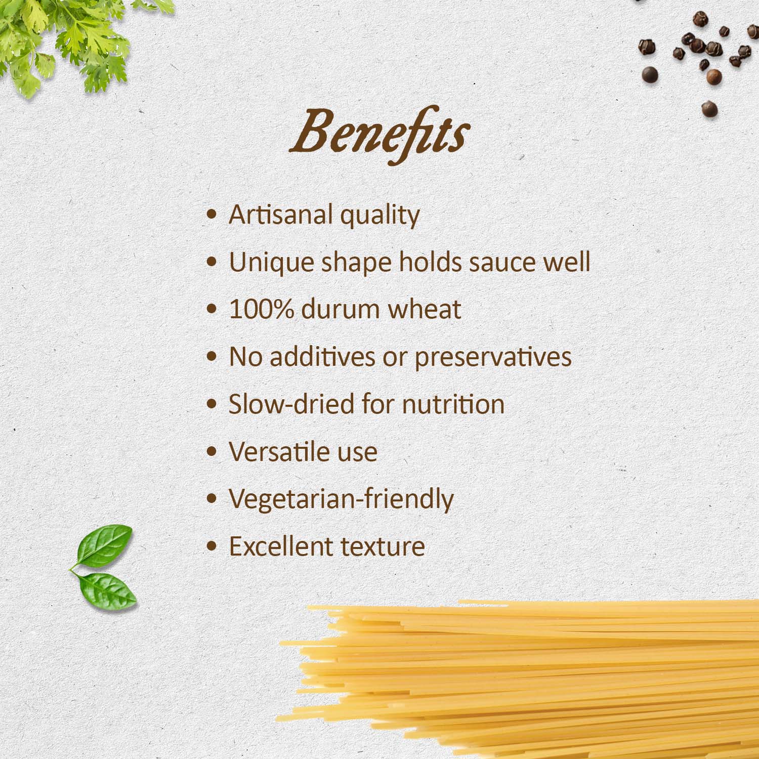 Anmara Artisanal Organic Fettuccine Pasta brings the rich traditions of Italian pasta-making to your table. Crafted from 100% organic Puglian hard durum wheat, this premium pasta uses the bronze-cut technique, giving it a rough, porous surface that holds onto sauces and condiments beautifully.