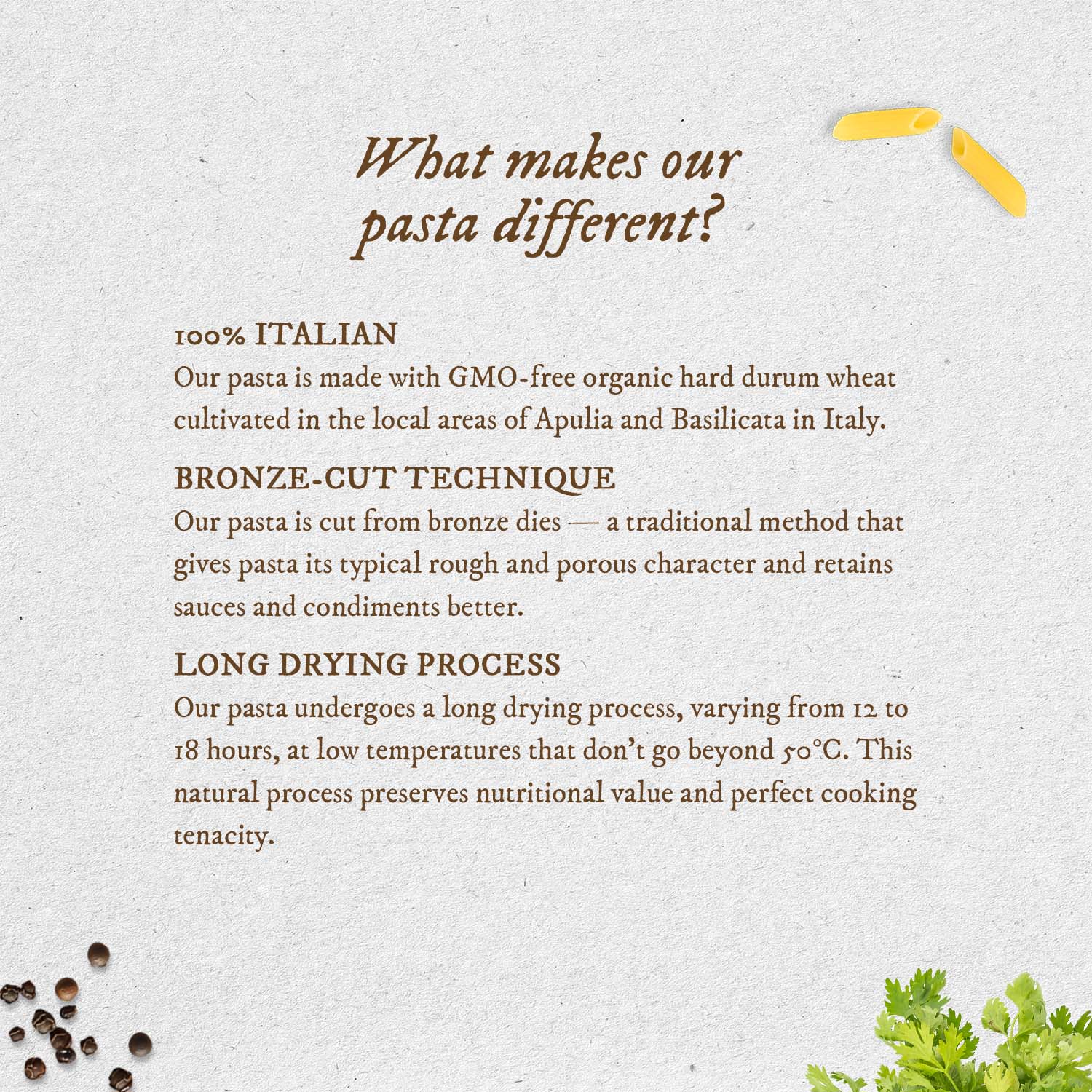 The pasta is naturally slow-dried at low temperatures, taking between 12 to 18 hours. This process locks in nutrients and enhances the robust texture and authentic Italian flavor. Perfect for pairing with a variety of sauces, Penne Rigate is a versatile choice for hearty meals, pasta salads, or baked dishes.