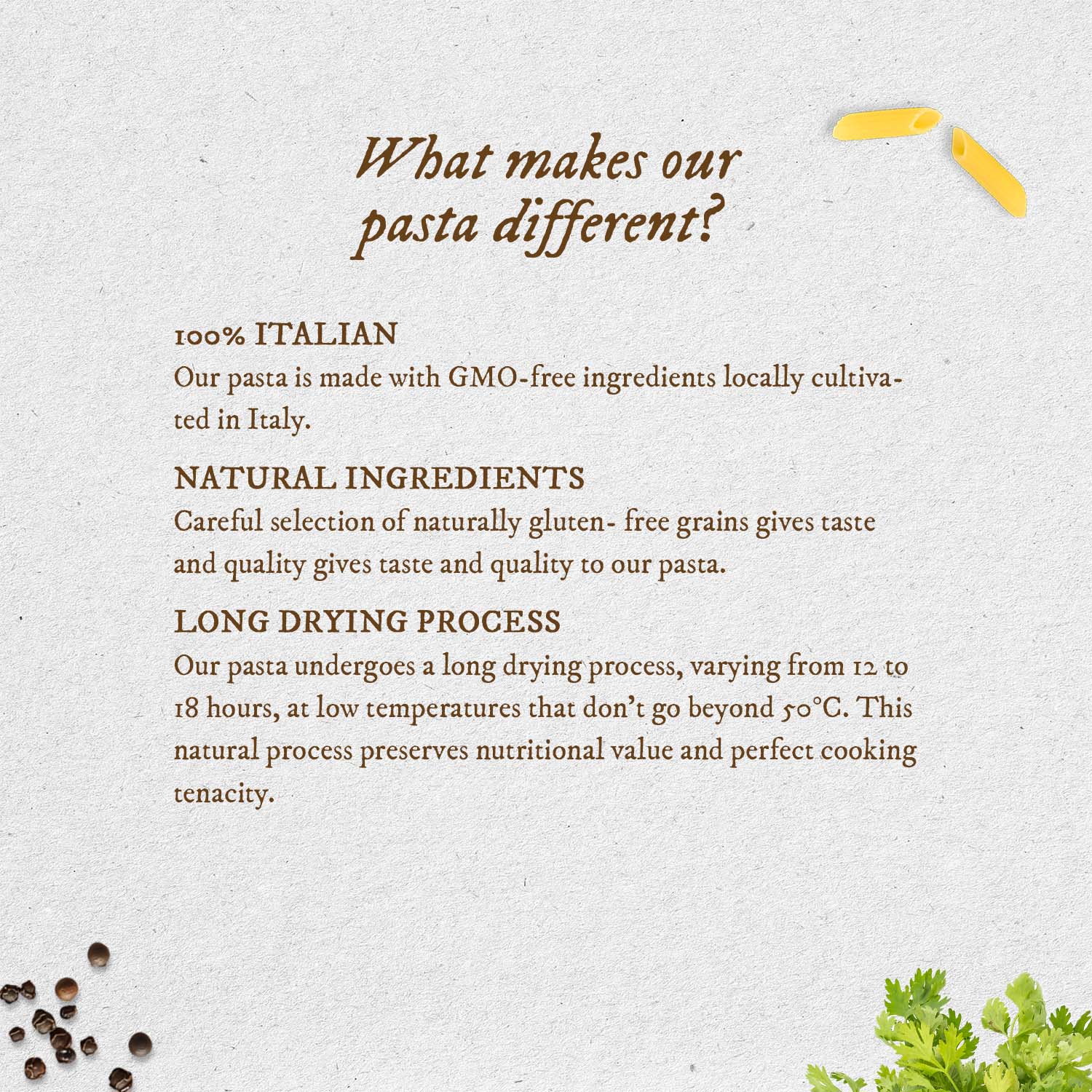 Using the traditional bronze-cut technique, the pasta achieves a rough, porous surface that perfectly retains sauces and condiments, ensuring every bite is full of flavor. Slow-dried for 12 to 18 hours at low temperatures, Anmara Gluten-Free Penne Pasta delivers authentic Italian taste and quality, making it an excellent choice for gluten-free meals.