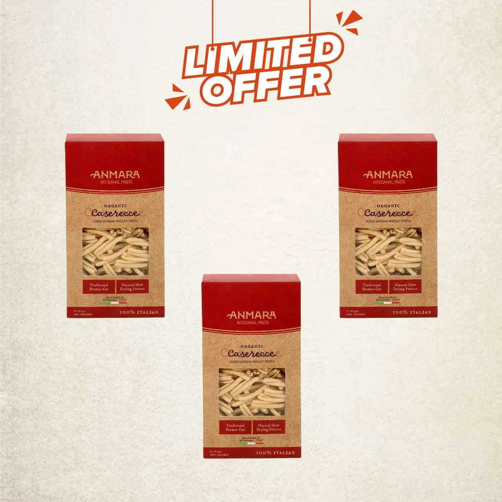 Special Combo Deals | Caserecce Organic Pasta – 3 x 500g Packs of Authentic Italian Hard Durum Wheat Pasta