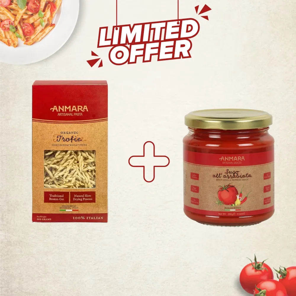 Special Combo Deals | Anmara Organic Trofie Pasta with Spicy Arrabiata Sauce