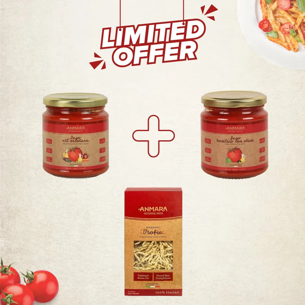 Special Combo Deals | Anmara Organic Trofie Pasta with Olive & Basil + Ortolana Sauces